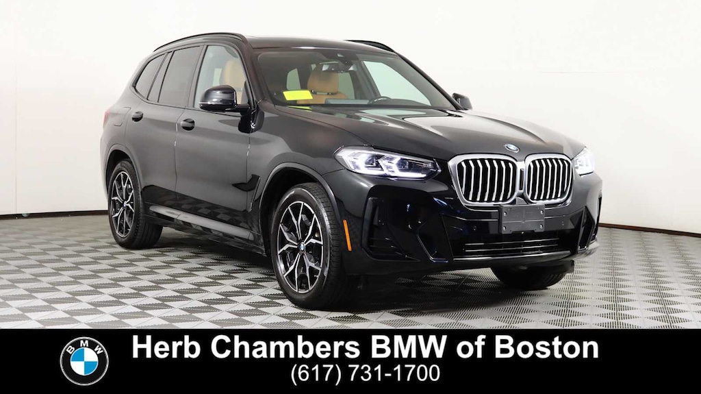 All Wheel Drive, Power Liftgate, Rear Air, Back-Up Camera, Turbocharged, Satellite Radio, iPod/MP3 Input, Onboard Communications System, Dual Zone A/C, Cross-Traffic Alert, Blind Spot Monitor, Brake Actuated Limited Slip Differential, WiFi Hotspot, Apple CarPlay®. Rear Spoiler, MP3 Player, Privacy Glass, Steering Wheel Controls, Child Safety Locks. BMW xDrive30i with Black Sapphire Metallic exterior and Cognac interior features a 4 Cylinder Engine with 248 HP at 5200 RPM*. Additional plans are available to extend coverage, if desired, Every vehicle is thoroughly inspected and reconditioned by BMW-Certified technicians, 1-Year/Unlimited Miles plus balance of original new vehicle limited warranty (4-Year/50,000-miles), Roadside Assistance includes jump starts, tire changes, lock out service, and fuel/fluid delivery, 24/7 Roadside Assistance (even if someone else is driving your vehicle), Trip interruption benefits are included, Service vehicle and/or alternate transport are included for the duration of your protection plan This X3 xDrive30i is priced $2,100 below J.D. Power Retail. Was $44,698.