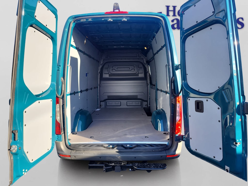 Turbocharged, Diesel, iPod/MP3 Input. MP3 Player, Onboard Communications System, Keyless Entry, Steering Wheel Controls, Heated Mirrors. Mercedes-Benz Sprinter Cargo Van with Aqua Green exterior and Black/White interior features a 4 Cylinder Engine with 168 HP at 3800 RPM*.