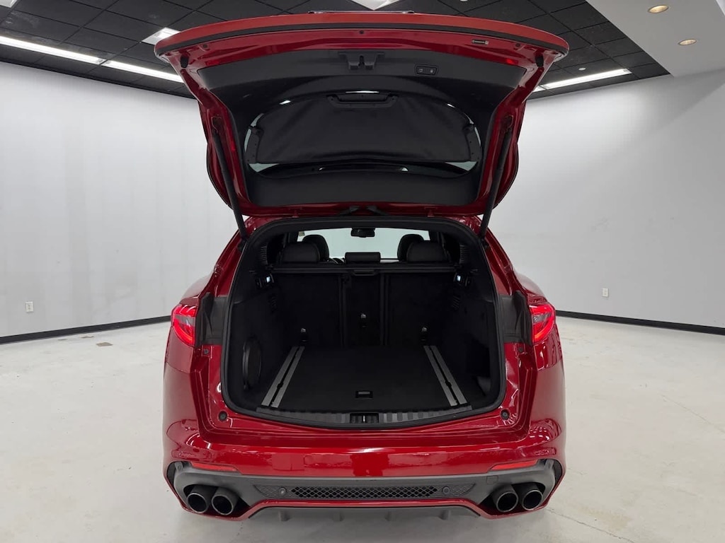 Navigation, Power Liftgate, Heated Driver Seat, Back-Up Camera, Premium Sound System Alfa Romeo Stelvio Quadrifoglio with Rosso Competizione Tri-Coat exterior and Black interior features a V6 Cylinder Engine with 505 HP at 6500 RPM*. Was $34,488.