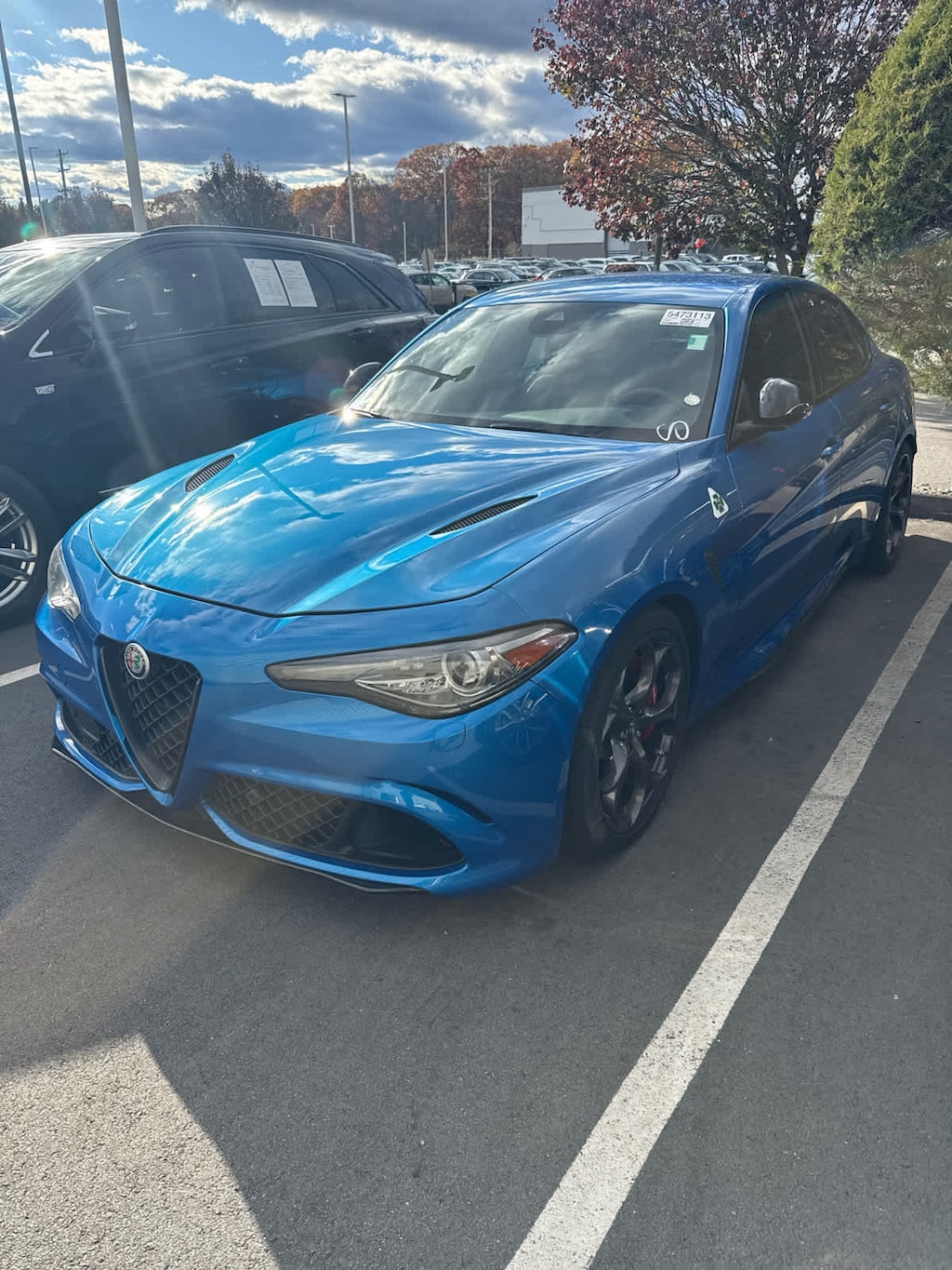 Navigation, Heated Driver Seat, Heated Rear Seat, Back-Up Camera, Premium Sound System Alfa Romeo Quadrifoglio with Misano Blue Metallic exterior and Black interior features a V6 Cylinder Engine with 505 HP at 6500 RPM*. CARFAX 1-Owner Was $69,988.