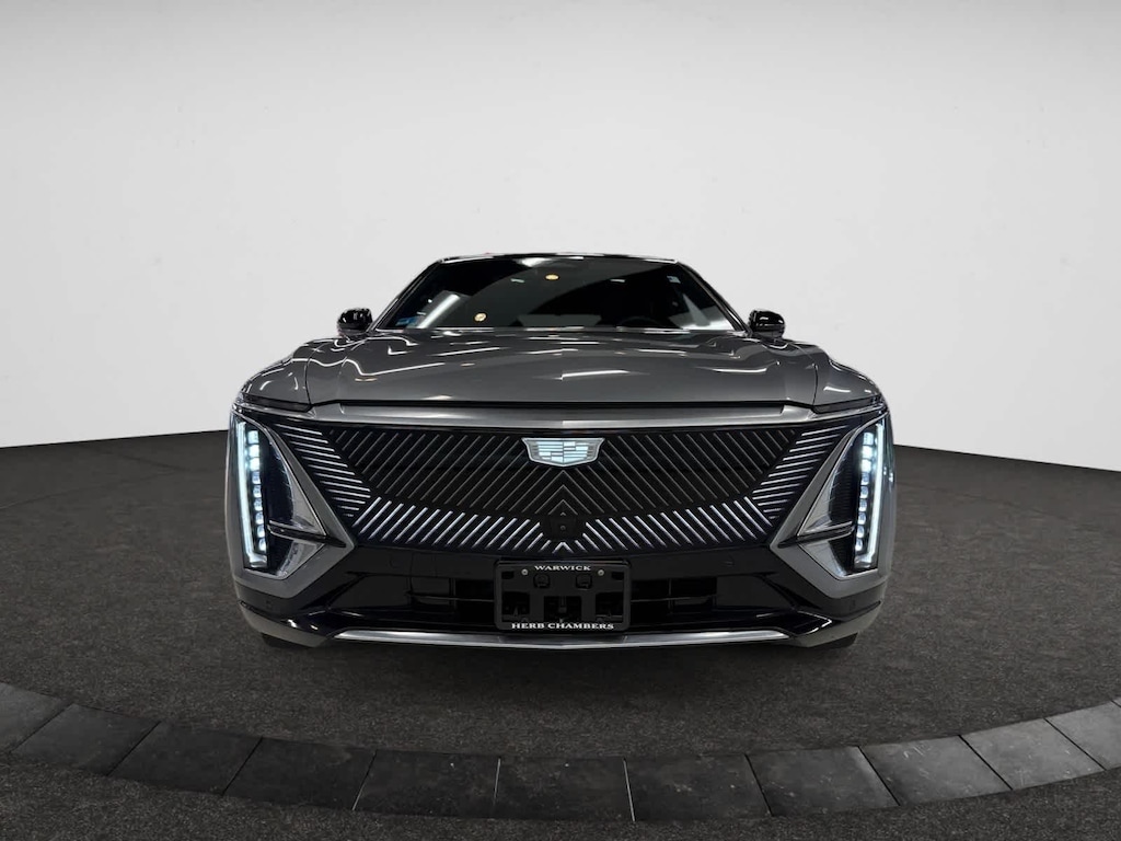 - (Animation only on Tech) - LYRIQ's choreography starts at the front with the Cadillac emblem, radiates across the front grille, and continues with the headlamps. The lighting next moves to the side door handles, and dramatically concludes at the rear taillamps