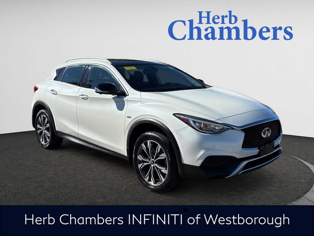Sunroof, Panoramic Roof, All Wheel Drive, Heated Driver Seat, Turbocharged. INFINITI LUXE with Majestic White exterior and Graphite interior features a 4 Cylinder Engine with 208 HP at 5500 RPM*. CARFAX 1-Owner AutoCheck One Owner