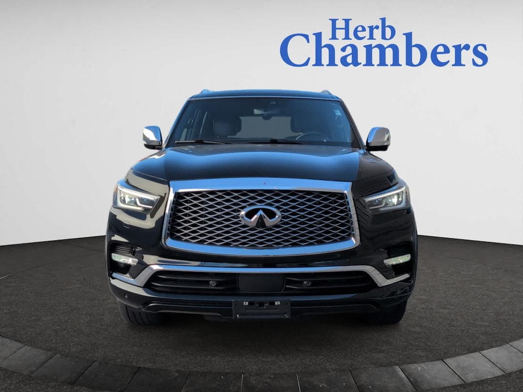 Leather Seats, Third Row Seat, Navigation, DVD, Sunroof, 4x4, Quad Bucket Seats, Power Liftgate, Rear Air, Heated Driver Seat, Heated Rear Seat, Cooled Driver Seat, Back-Up Camera, Running Boards, Premium Sound System Rear Spoiler, MP3 Player, Rear Seat Audio Controls, Keyless Entry, Privacy Glass. INFINITI SENSORY with Black Obsidian exterior and Graphite interior features a 8 Cylinder Engine with 400 HP at 5800 RPM*. CARFAX 1-Owner 5-Day 100% Money Back Guarantee / 30-Day 1,500 Mile Vehicle Exchange and, A complete Vehicle Portfolio & CarFax. Visit www.herbchamberssmartpricing.com for complete details. Only a Herb Chambers CERTIFIED Pre-Owned vehicle receives a rigorous Multi-Point Inspection This QX80 is priced $11,200 below J.D. Power Retail.