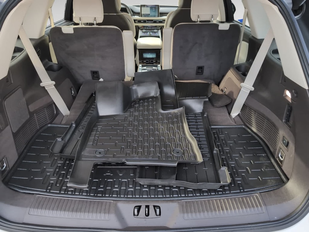 Panoramic Roof, All Wheel Drive, Navigation, Back-Up Camera, Heated Rear Seat, Remote Engine Start, Onboard Communications System, Power Liftgate, Rear Air, Cooled Rear Seat, Premium Sound System, Satellite Radio, iPod/MP3 Input, Quad Bucket Seats, Aluminum Wheels Rear Spoiler, Third Row Seat, MP3 Player, Rear Seat Audio Controls, Sunroof. 2020 Lincoln Aviator with Pristine White Tri-Coat exterior and Cashmere interior features a V6 Cylinder Engine with 400 HP at 5500 RPM*. CARFAX 1-Owner