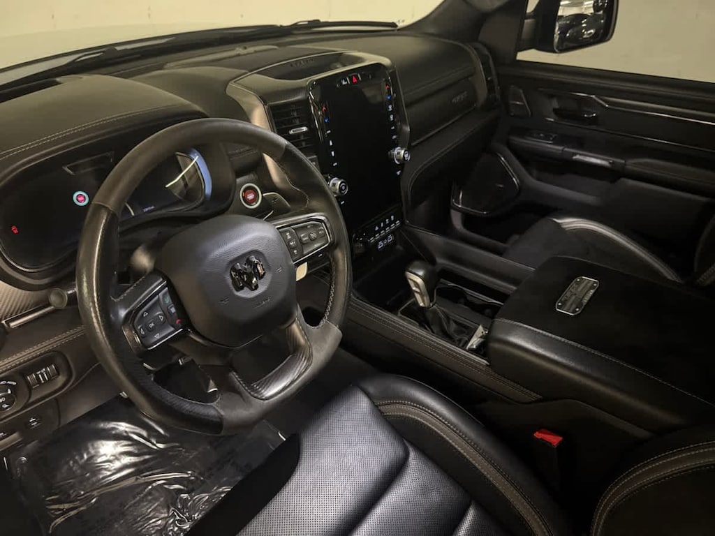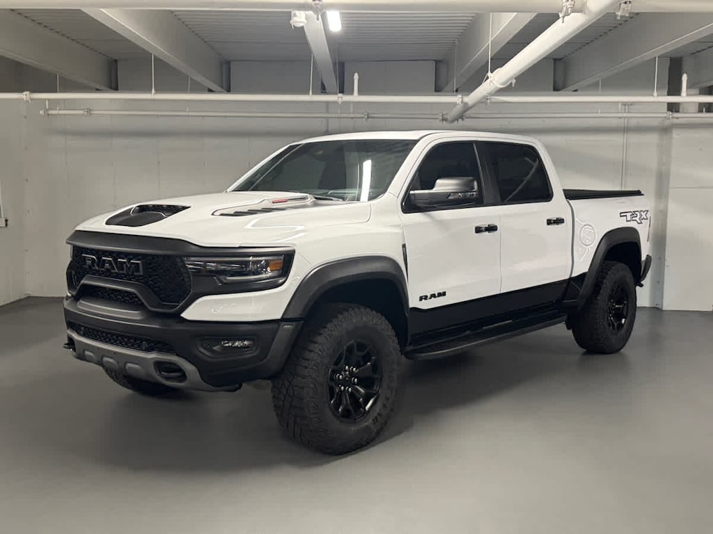 Navigation, 4x4, Satellite Radio, iPod/MP3 Input, Bluetooth® Ram TRX with Bright White Clearcoat exterior and Black interior features a 8 Cylinder Engine with 702 HP at 6100 RPM*.