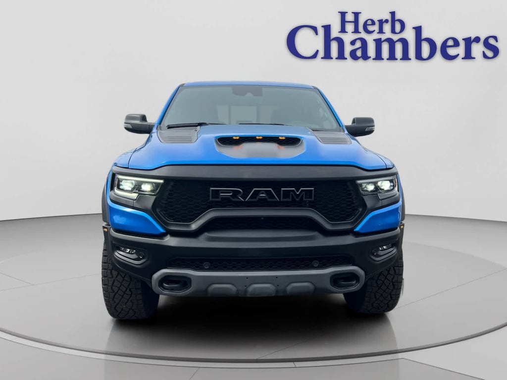Navigation, 4x4, Satellite Radio, iPod/MP3 Input, Bluetooth®, Trailer Hitch, Aluminum Wheels, Remote Engine Start, Dual Zone A/C, Smart Device Integration, WiFi Hotspot MP3 Player, Privacy Glass, Child Safety Locks, Steering Wheel Controls, Heated Mirrors. Ram TRX with Hydro Blue Pearlcoat exterior and Black interior features a 8 Cylinder Engine with 702 HP at 6100 RPM*. CARFAX 1-Owner 5-Day 100% Money Back Guarantee / 30-Day 1,500 Mile Vehicle Exchange and, A complete Vehicle Portfolio & CarFax. Visit www.herbchamberssmartpricing.com for complete details. Only a Herb Chambers SMART Pricing Pre-Owned vehicle receives a Multi-Point Inspection Reduced from $89,998. This 1500 is priced $9,700 below J.D. Power Retail.